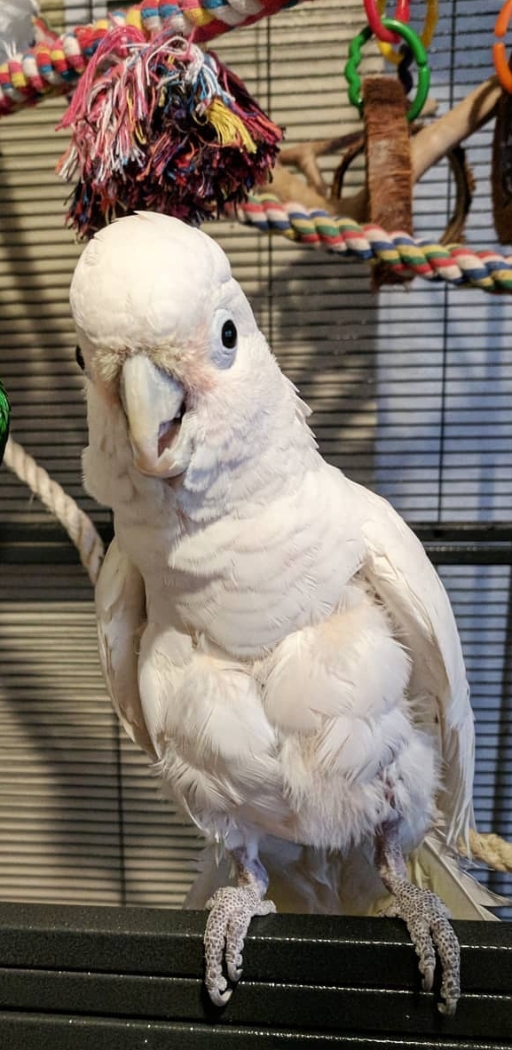 Say hello to Zizu, a delightful and intelligent female Goffin Cockatoo ready to bring joy, companionship, and endless entertainment into your home. Known for their playful nature and affectionate personality, Goffin Cockatoos make excellent family pets and thrive on interaction.